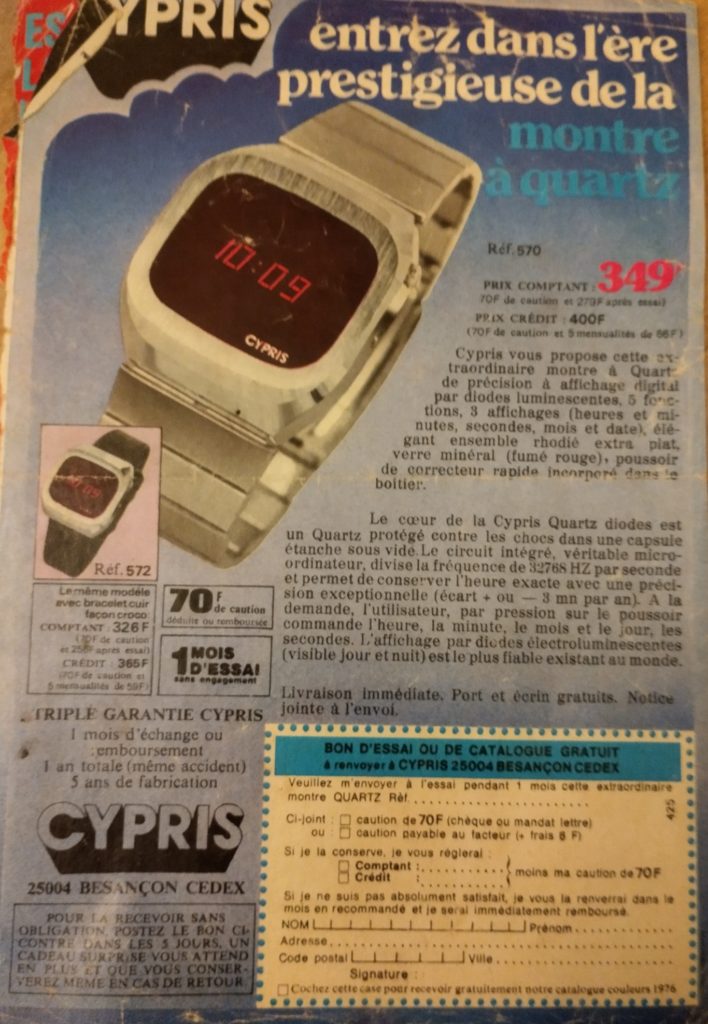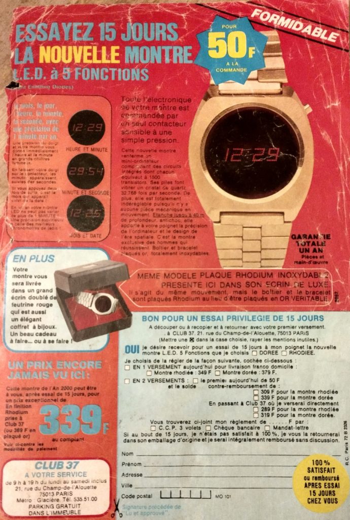 J’avais 15 ans à cette époque. Je vins à remarquer au poignet de mon grand oncle une chose étrangement moderne : une montre à quartz toute neuve. « Je ne la mets que le dimanche », précisa-t-il. Vu le geste du bouton poussoir, il n’était pas possible de ne pas remarquer une telle montre.