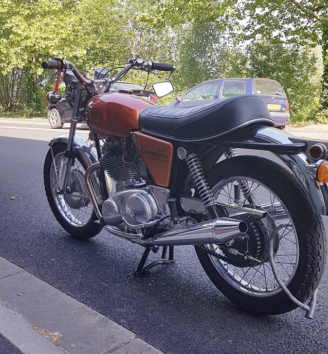 De nos jours, des boutiques de motos anciennes ouvrent ici et là. J’y ai vu un jour « ma » Norton Commando 850. Enfin, elle était là, sous mes yeux, bien mise en valeur sur le trottoir du magasin. J’ai demandé à prendre une photo. J’ai échangé quelques mots avec le marchand. Le prix demandé était élevé, beaucoup trop pour cette vieille moto, finalement moins jolie que celle idéalisée par mon imagination d’adolescent.